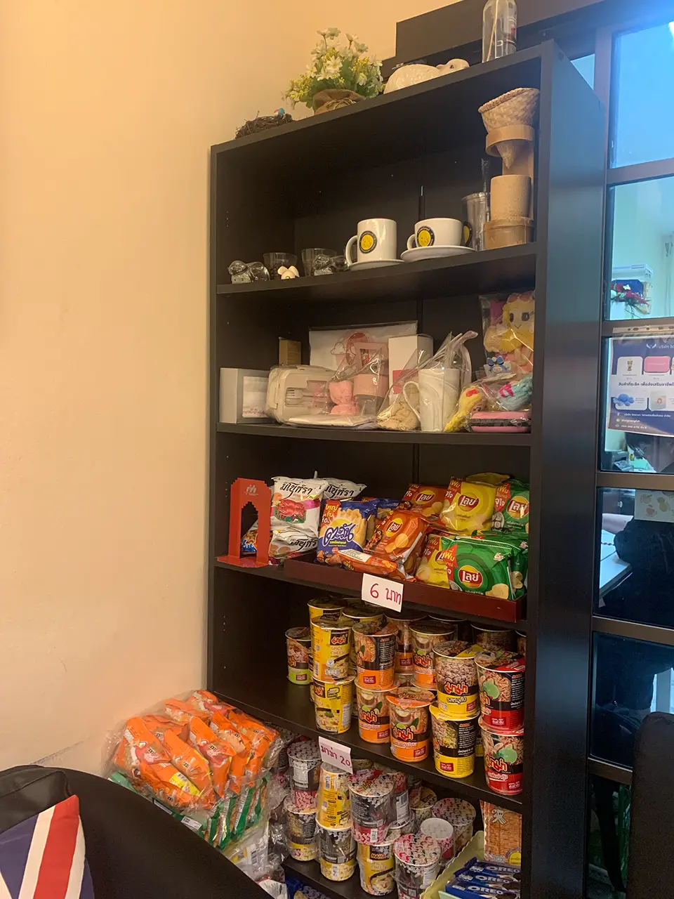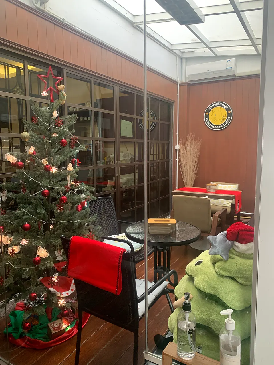 ร้านกาแฟบรรยากาศอบอุ่น ภายในตกแต่งด้วยโทนไม้และแสงไฟนวลตา ให้ความรู้สึกผ่อนคลายเหมือนอยู่บ้าน จะมานั่งจิบกาแฟแก้วโปรด ทานครัวซองต์หอมๆ หรือจะจัดหนักด้วยมาม่าคัพและขนมขบเคี้ยวก็มีให้บริการครบ!